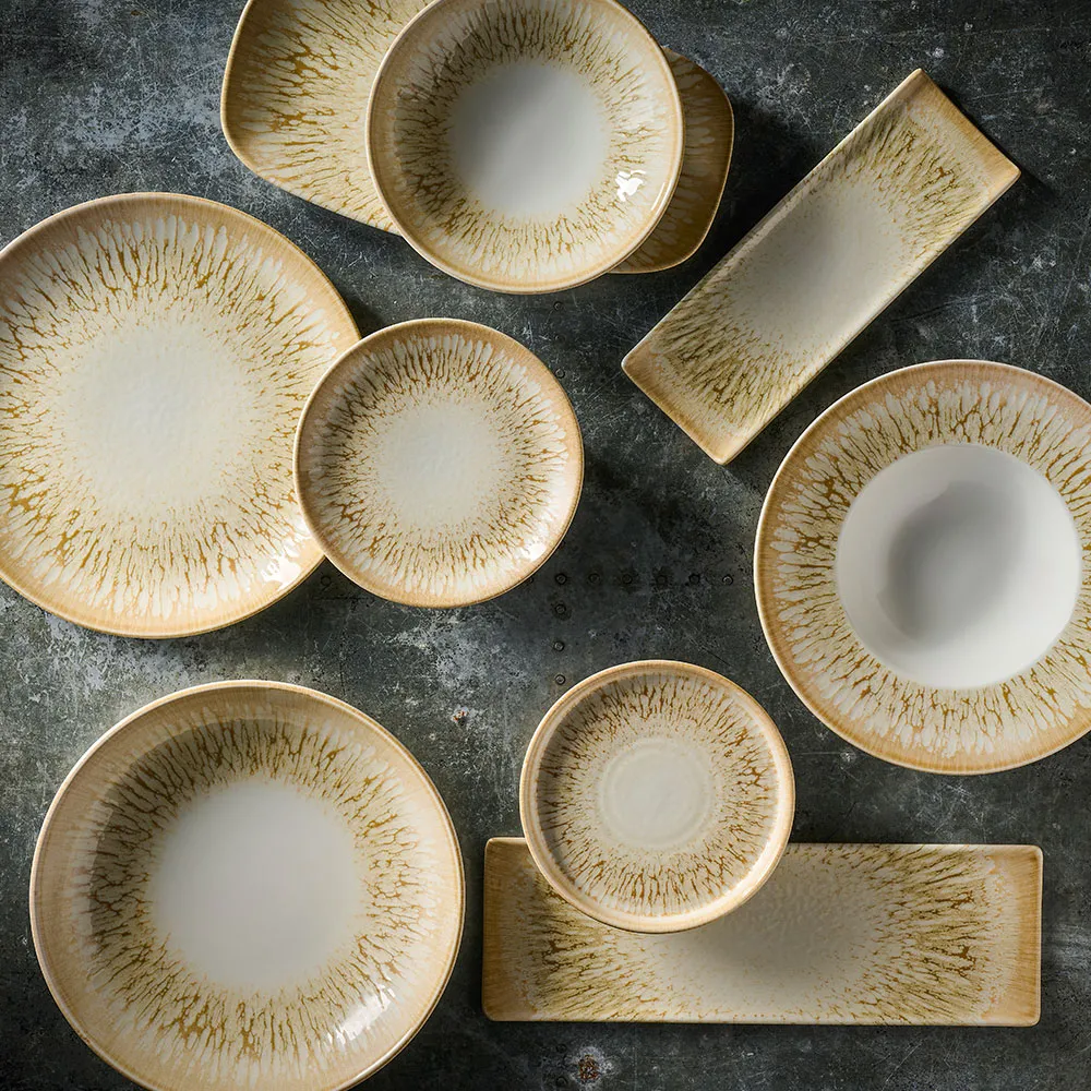 Das Lumé-Design erinnert an einen energetischen Ausbruch von radialem Licht und verleiht dynamischen Tischdekorationen Brillanz. Lumé verwandelt jede Mahlzeit in ein Erlebnis und bringt Dramatik sowie künstlerischen Ausdruck auf den Tisch.