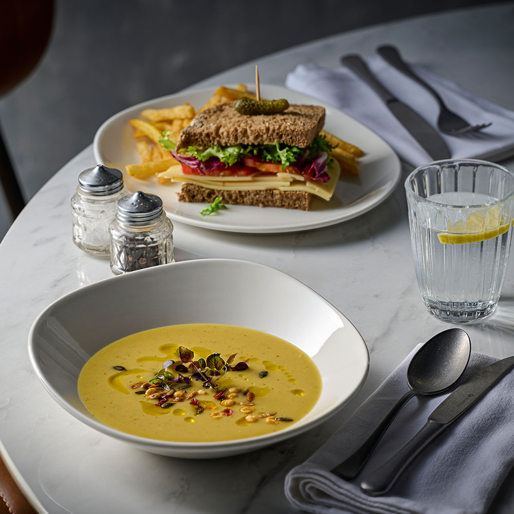 Opal ist eine Kollektion zeitgemäßer Formen, inspiriert von den organischen Linien der Natur. Erhältlich als Teller und Schalen eignet sich die dezente, zeitlose Form besonders für die Präsentation frischer und saisonaler Gerichte.