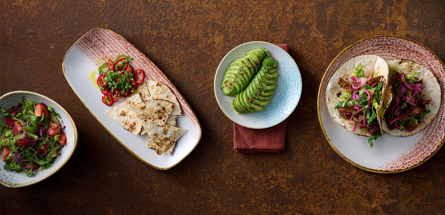 Homespun Accents bietet eine ausgewogene Balance zwischen Farbe und Textur und einem schlichten weißen Raum. Unterglasurdruck für zusätzliche Haltbarkeit, mit einem von Hand angebrachten Randstreifen versehen und mit reaktiver Farbe bedruckt, so dass jedes Stück einzigartig ist.