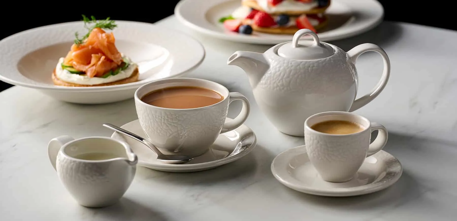 Das unverwechselbare Gepräge von Viana ahmt den zeitlosen und historischen Charme nach, den man oft bei traditionellen Terrassenfliesen in Córdoba, Spanien, sieht. Viana ist in einer breiten Palette von Geschirrformen und Getränken zu finden und verbindet die Essenz komplizierter Kunstfertigkeit mit funktionellem Design und verleiht modernen Esserlebnissen eine gehobene und raffinierte Note.