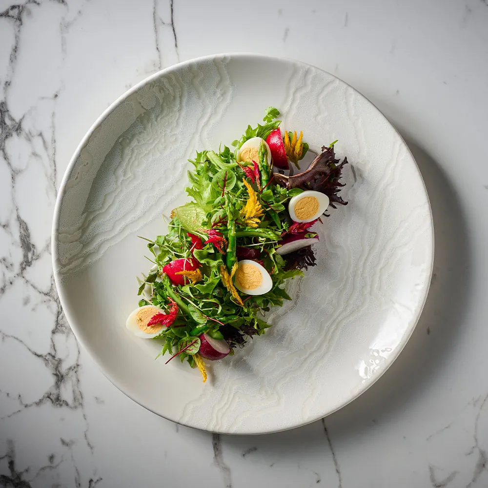 Contemporary and striking, the Inked Tide design draws its inspiration from the fluid and organic shapes of coastal landscapes. Tide is perfect for premium food presentation and modern hospitality settings.