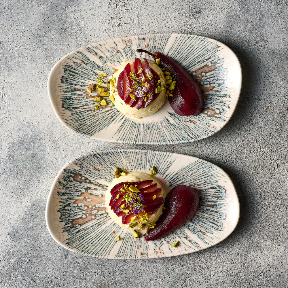 Lovely dish from @chef_maximilien_kuzniar of courgette, fresh goat's cheese and homemade salted granola. Using our Stonecast Accents range in Petal Pink.