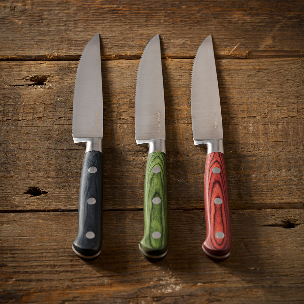 Craft-engineered for a superior dining experience, the Steak Collection is designed for precision, balance and comfort. Produced in premium steel for exceptional cutting, edge retention and overall durability. The Comas Steak Collection features various ergonomic handle shapes and tactile finishes, including wood and resin.