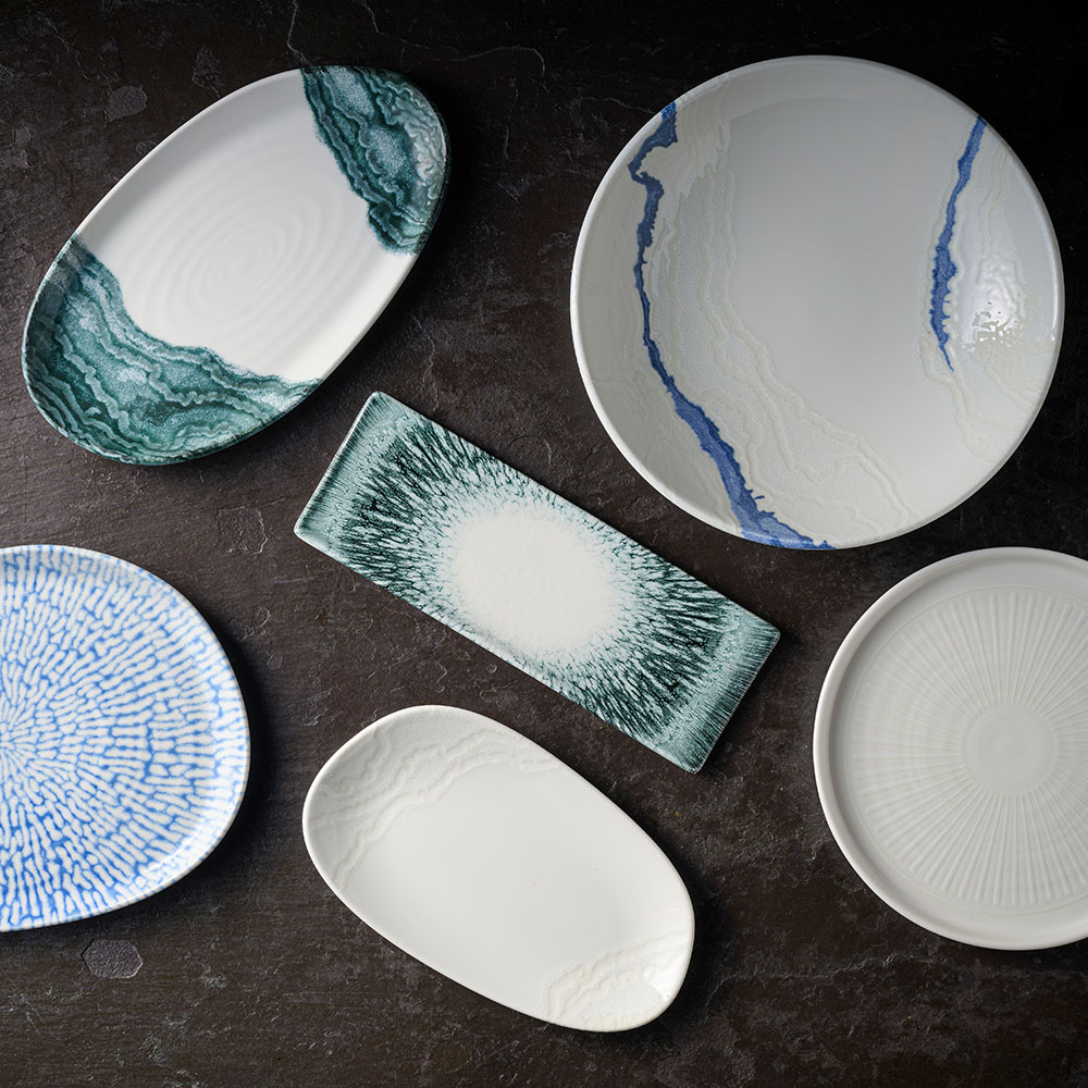 The Era design creates a retro vibe, with its radial print that takes inspiration from the Mod subculture of the 1950’s and 1960’s. An ideal platform for food, the Era pattern perfectly frames a chef’s creative composition.