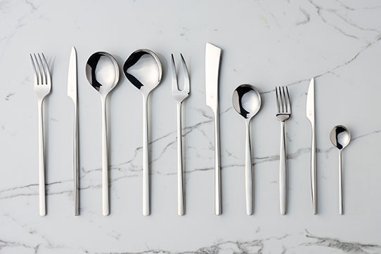 Confidently understated, the Atlantida design features long, linear handles for a sleek and minimal design. Perfectly balanced, the pieces sit naturally in the hand, offering both delicacy and control. The tall, slender silhouette in a quality 18/10 polished finish complements fine dining settings with elegance.